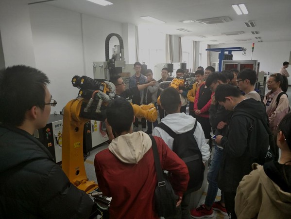 为拓宽本科生的专业视野,加深对未来专业方向的认识,形成以科创促学风的氛围,本学期51吃瓜 在本科生中实行“科研实习生”计划,组织本科生进入重点实验室进行参观交流。4月14日下午,科研实习生计划第一期在明故宫校区15号楼飞机智能装配实验室举行。经过前期学生自主报名,筛选抽取,2016、2017级共计20名本科生参与了第一期的活动,他们在研究生学长的带领下参观了该实验室的实验设备,并就一些科研问题进行了交流。
