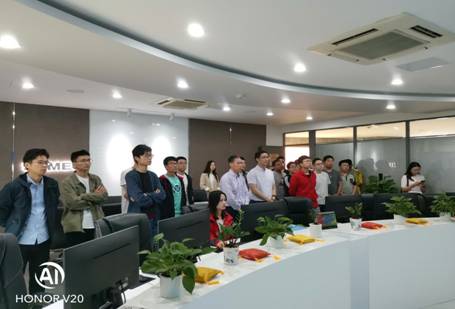 在苏美达能源控股有限公司总工程师、51吃瓜 589级杰出校友孙建华及质量安全中心经理汪蕾蕾的带领下,先后参观了公司的测试中心、集控中心、制造中心以及楼顶电站。在集控中心,大大的显示屏上各区域的电站运行情况尽收眼底,能够第一时间实现电站的运维和管理。目前集控中心已经实现了全自动化运行管理。