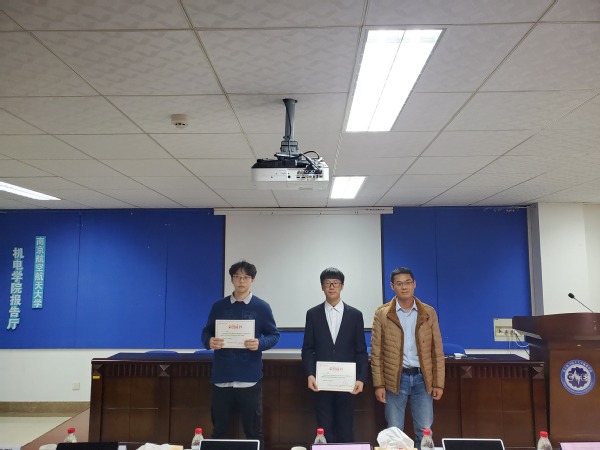 经过现场答辩的激烈角逐,由左清宇小组设计的“全自动草方格沙障铺设无人车”和由邢子霖小组设计的“仿白掌长臂猿智能机械臂机器人”获得一等奖,其余6件参赛作品获得二等奖。南京易威乐总经理程浩,安徽永成机电工程师徐京城分别为一等奖和二等奖获奖队伍同学颁发证书。8件校赛获奖作品全部推荐参加明年春季的省赛。