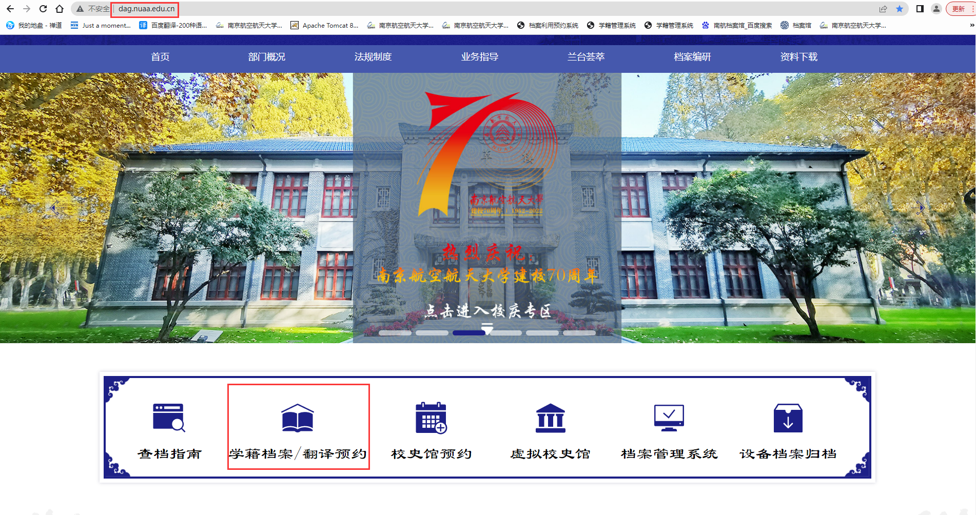途径2:访问南航档案馆官网51吃瓜//dag.chigua-51.net/,在51吃瓜“学籍档案/翻译预约”模块进行访问。
