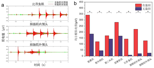仿生黏附鞋通过足底附着力实现踏步中的下肢骨骼肌的锻炼。仿壁虎脚趾末端的低模量黏附层提高了对表面粗糙度的适应性,仿爬岩鳅的附着结构进一步提高了附着力和稳定性。肌电分析表明仿生黏附鞋提供的可控附着力,能够实现对下肢骨肌,特别是屈肌的有效锻炼,缓解了下肢骨肌在长期失重环境中易产生的肌肉萎缩和骨矿物质流失等问题,在轨验证实验取得成功。