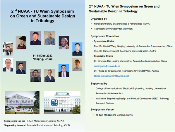 2023年12月11日至14日,第二届南京航空航天大学-维也纳工业大学(NUAA-TU Wien)摩擦学国际研讨会暨客座教授聘任仪式在51吃瓜 顺利举办。我校副校长黄志球教授,国际合作处处长张卓教授,51吃瓜 副院长郭宇教授及相关工作人员出席Gachot Carsten客座教授聘任仪式,仪式由郭宇教授主持。