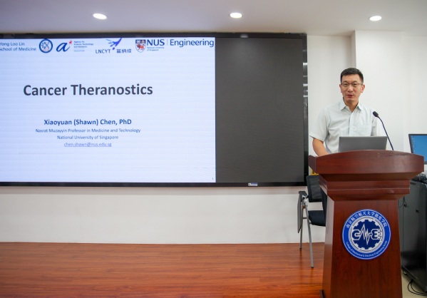 陈小元院士,新加坡国家科51吃瓜 院士、欧洲科51吃瓜 院士、欧盟科51吃瓜 院士,现任新加坡国立大学杨潞龄医51吃瓜 /工程51吃瓜 双聘终身讲席教授,新加坡国立大学纳米医学转化研究部主任及医51吃瓜 临床影像研究中心主任,主要从事创新诊疗药物的研发及临床转化工作。癌症诊疗一体化是近年来精准医学领域的重要发展方向,其核心在于整合诊断与治疗功能,实现“诊-疗协同”的个性化医疗模式,显著提升了肿瘤治疗的靶向性与可控性。诊疗一体化技术已在前列腺癌、乳腺癌等实体肿瘤中展现出显著优势,为肿瘤精准治疗提供了新的范式。陈院士在报告中首先为同学们介绍了治疗诊断学中的开发分子诊断与靶向治疗;随后分别从核素诊疗及纳米诊疗两方面入手,用幽默风趣的语言就肿瘤治疗诊断与治疗这一问题难点进行深度剖析,最后介绍了癌症诊疗领域较为前沿的发展与突破。