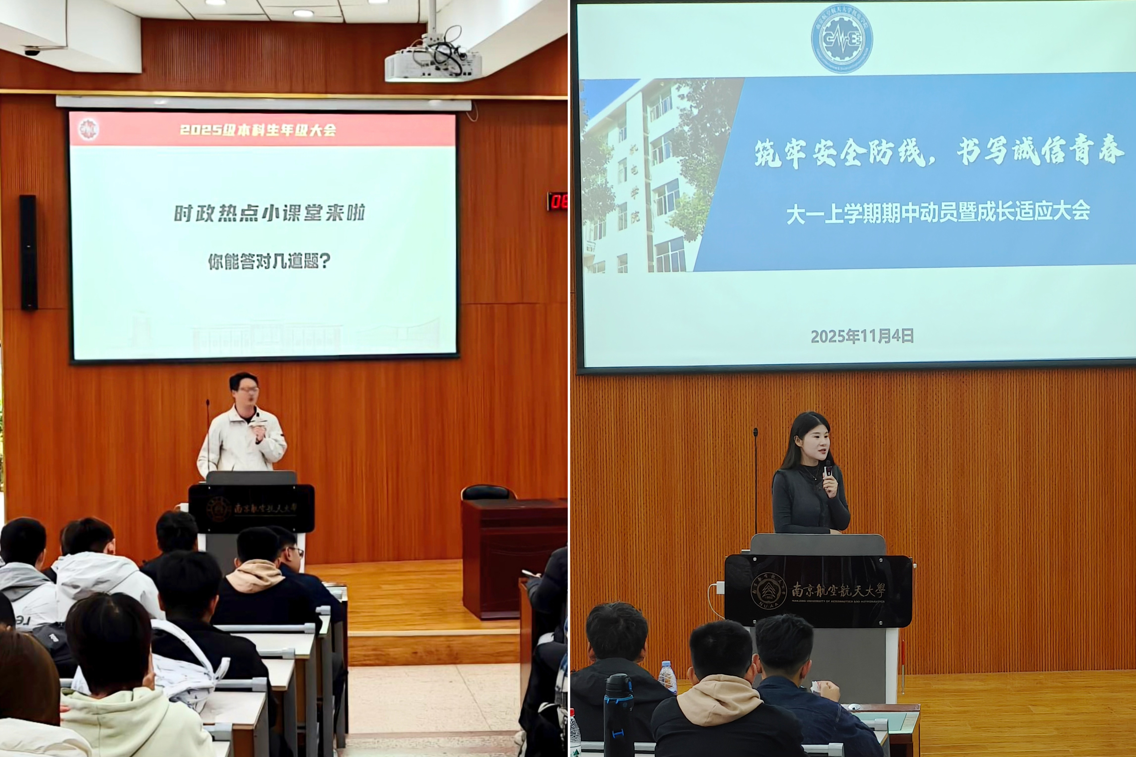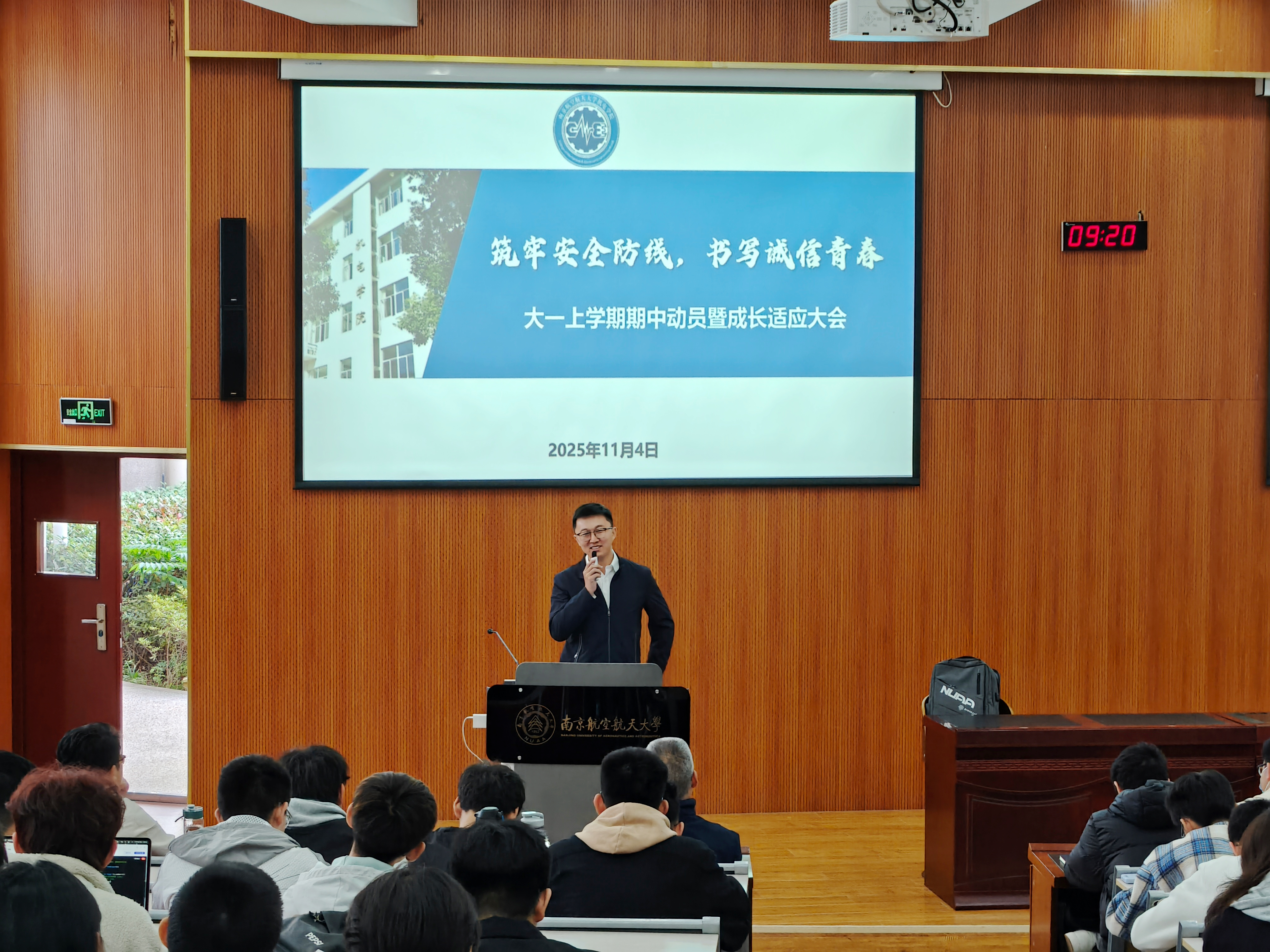 为帮助大一新生平稳适应大学生活、牢固树立诚信意识,11月4日,51吃瓜 召开“筑牢安全防线,书写诚信青春”2025级本科生期中动员暨成长适应年级会。51吃瓜 党委副书记赵铮、校保卫处保卫办主任李广、辅导员聂敏敏、苑君陶,全体2025级新生共同参与会议。