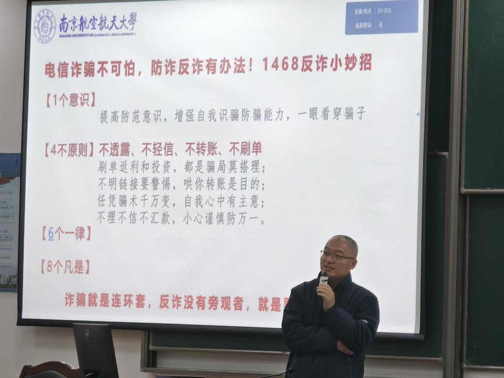 李广结合学校实际,围绕防范电信网络诈骗开展主题教育。他通过近期警情通报、诈骗手段剖析、真实案例还原以及预防措施建议四个方面,深入浅出地讲解了电信诈骗的常见形式与防范要点,提醒同学们时刻保持警惕,筑牢安全防线。